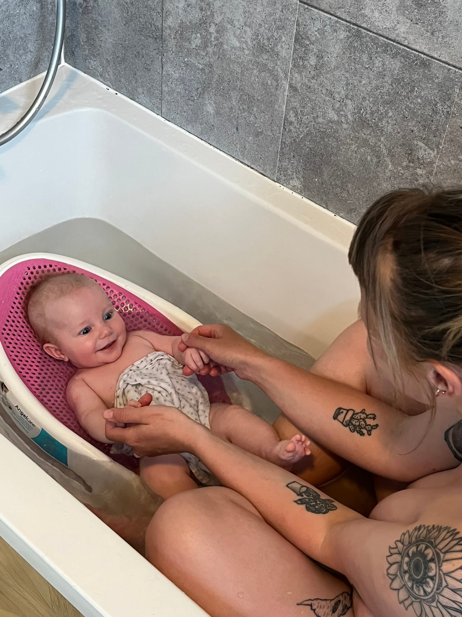 It's no surprise to anyone that Tee ✨LOVES✨ a bath. Every bath since his first bath, Tee poses the question: "Should I get in with him?" And she finally did it.