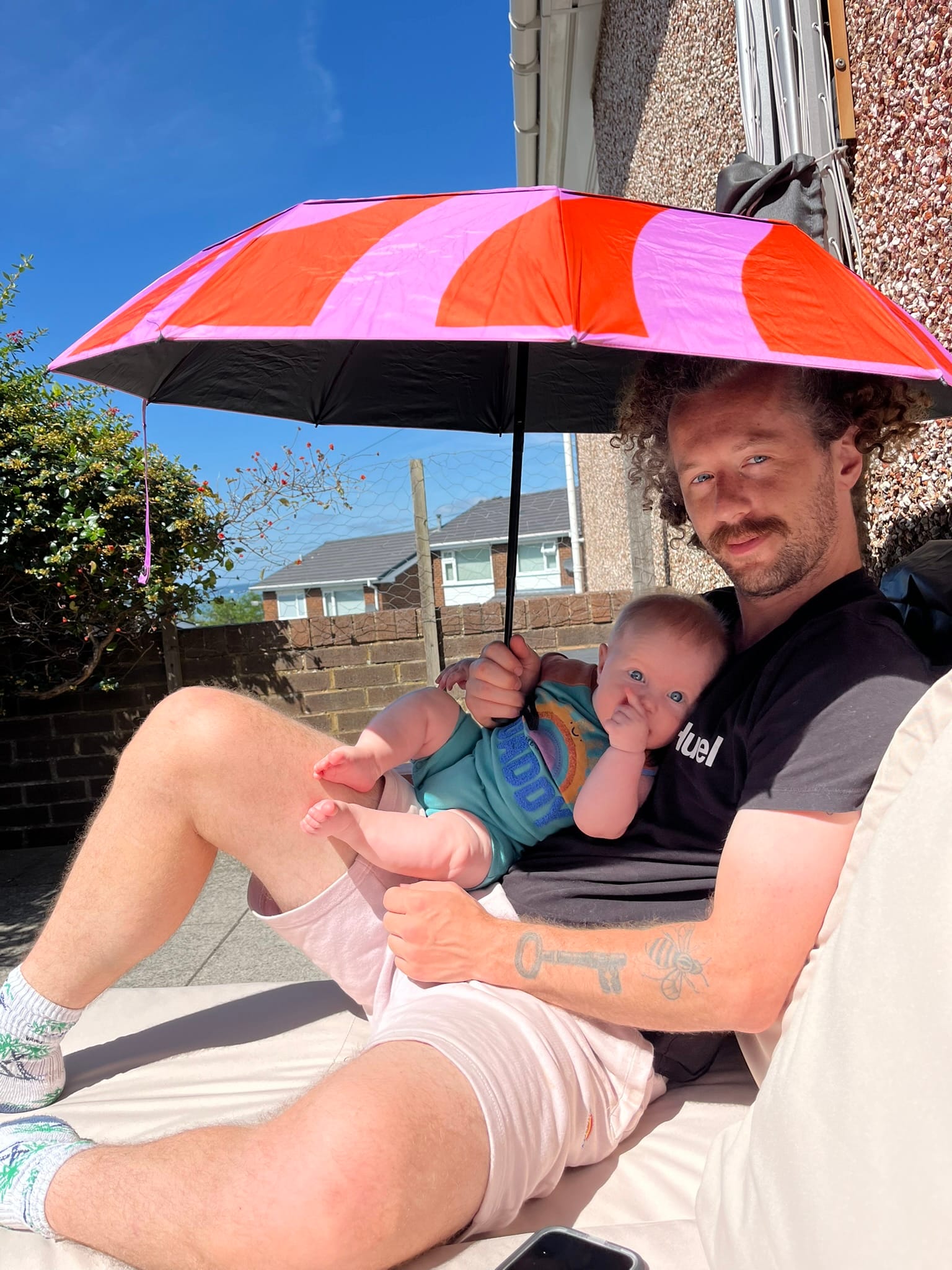 It's been damn hot. Which must be tough for the boy as he will be uncomfortable but not able to understand why he's uncomfortable. We tried to keep him cool the best we could; no clothes, a fan, and little dips in the local pool. Everyday we were waiting for the shade to come into the garden so we could take him outside where it was cooler with the breeze. We also had to give ourselves some opportunity to enjoy the weather by having a chippy picnic by the sea. And I'd rate the chippy high 7/10, room for improvement but at least all the chips were cooked.