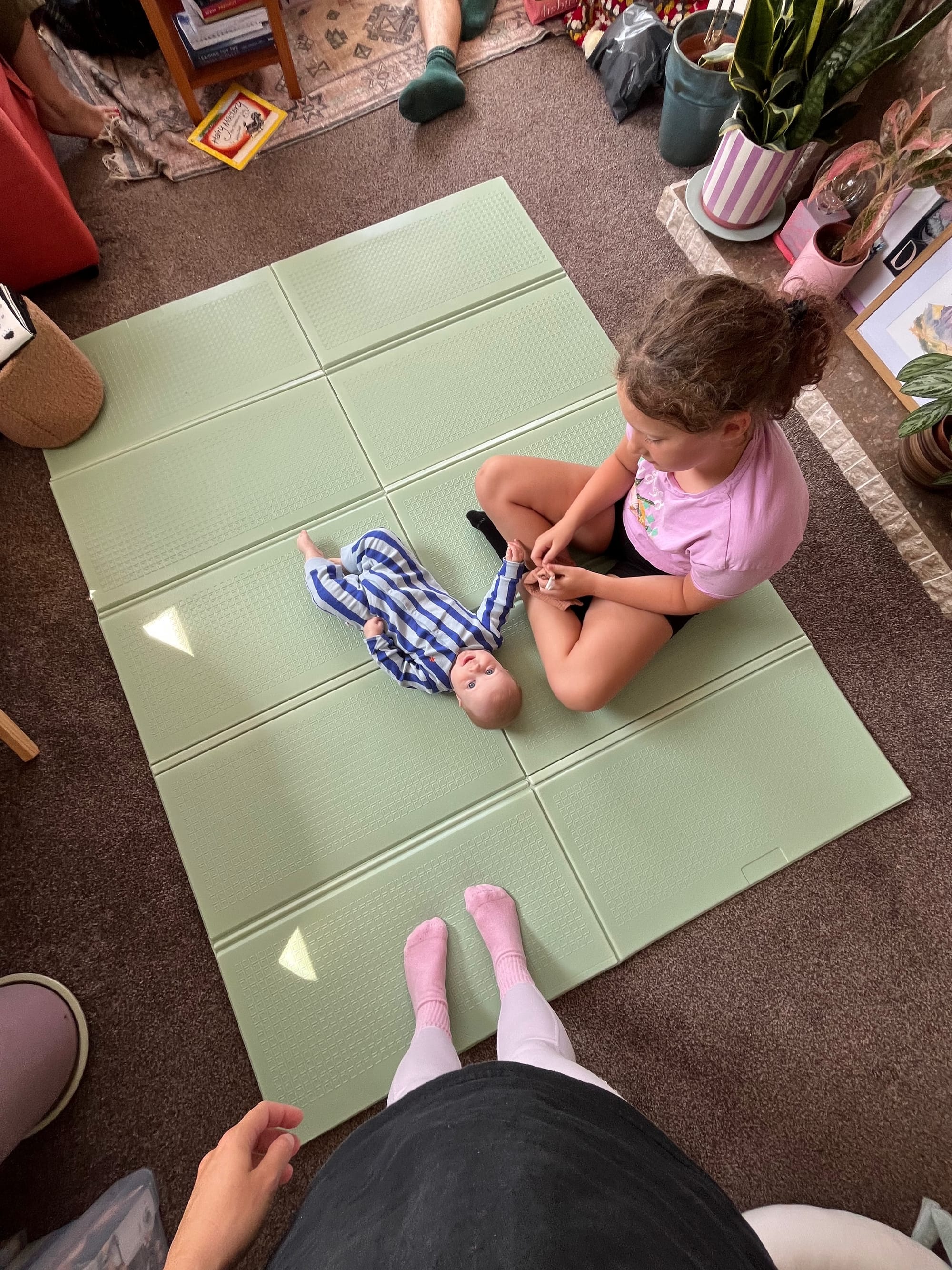 My mum, my sister, and the (three) cousins came over to visit. They arrived while he was asleep. I crammed everyone into the piles everyone into the living room and we waited patiently for the boy to wake up. I was nervous for him coming into the room as it would be filled with a bunch of people who aren't usually there. I know I wouldn't want to wake up to my playing room filled with 5 extra people. But he came round the door, took a quick glance across all the faces beaming back at him, and gave everyone a big smile.