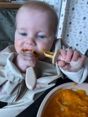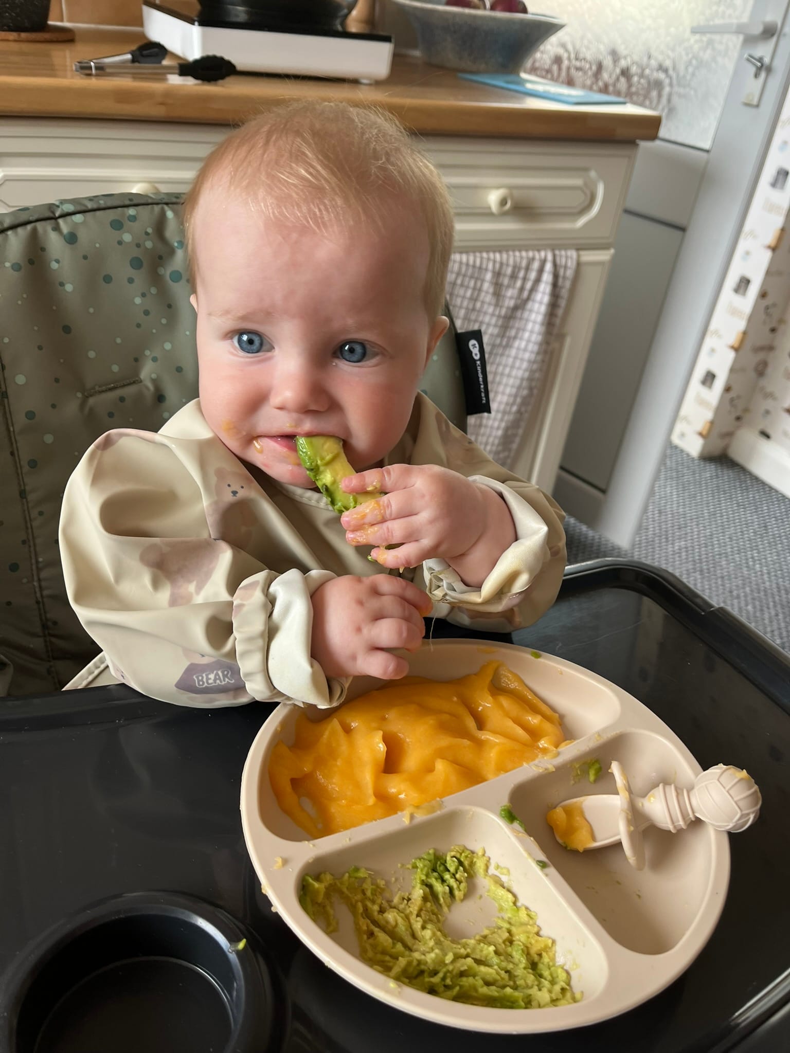 He's had some new vegetables; cabbage and squash. And first fruits: avocado and pear. I was very excited to get him on the fruits as it must be better than steamed vegetables. I think though if you've had milk for 6 months, anything would taste great.