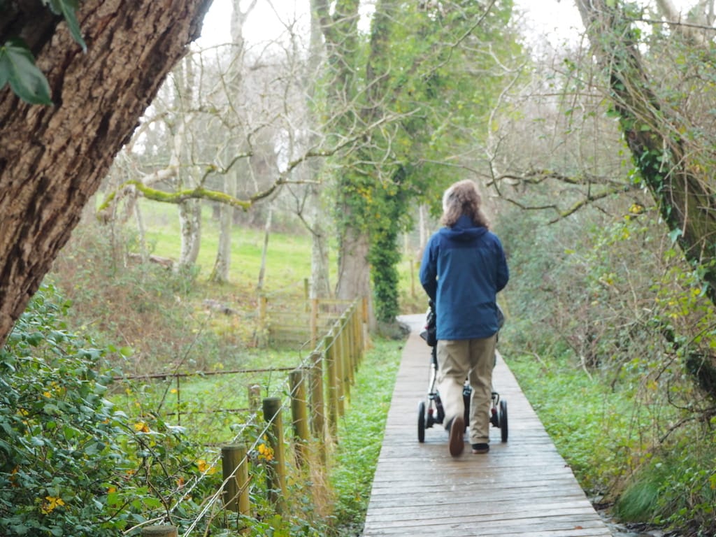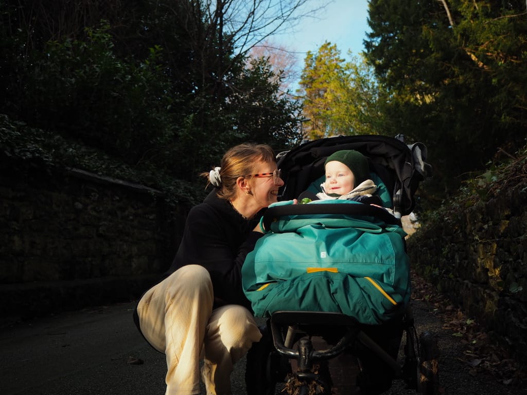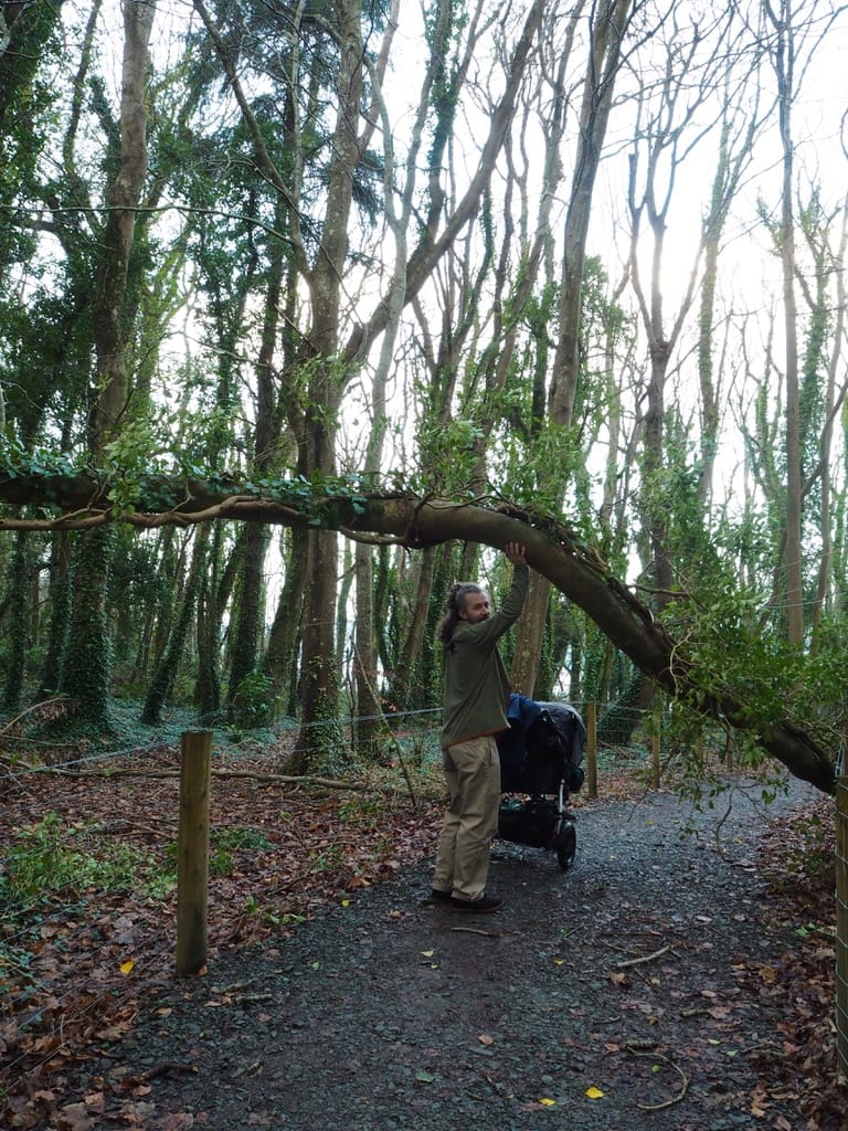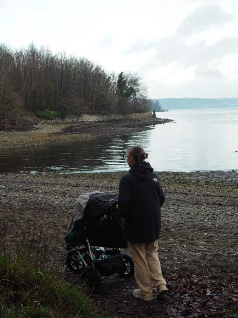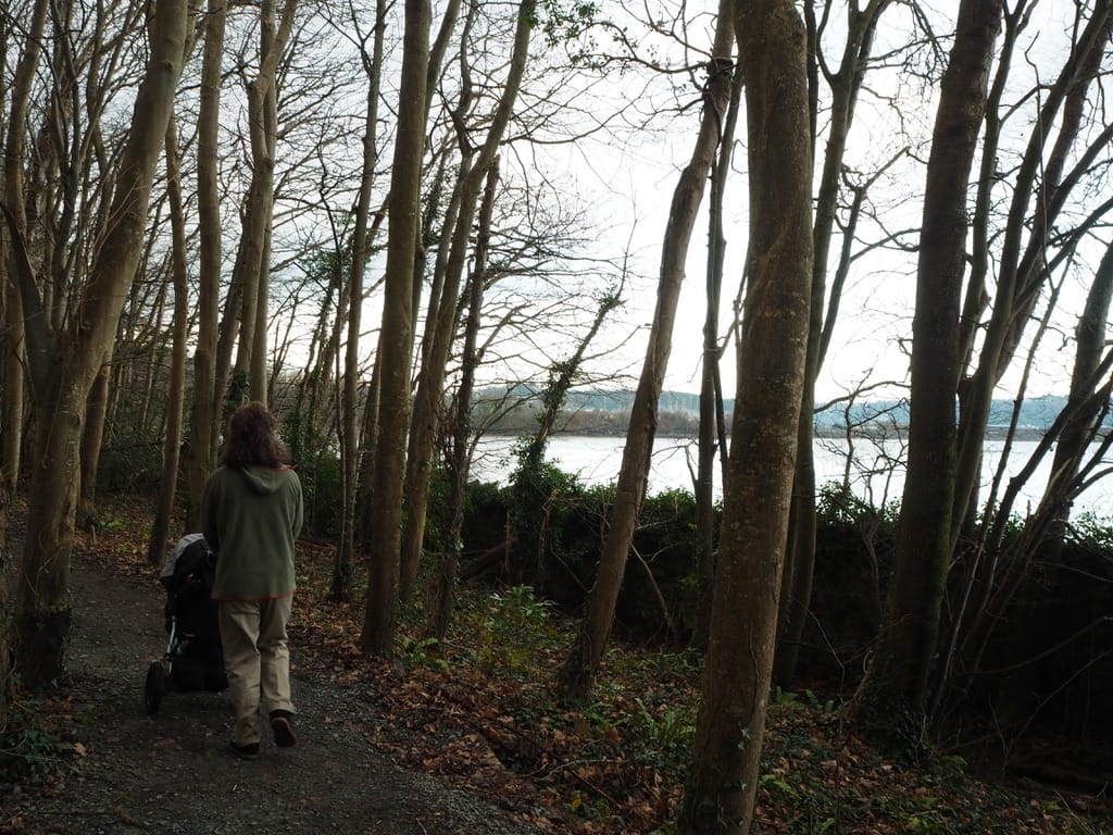 Těším se na volno, protože se budu moct přidat k Rolandovým uspávacím procházkám v kočárku a vyrazit o něco dál než obvykle. Plán byl projít se „zadní cestou“ k hradu Penrhyn Castle, který spravuje National Trust. Bohužel měli všechno dobře zabezpečené, takže jsme nakonec obešli celý areál dokola. Byla to pořádná výprava, ale výhledy za to stály.