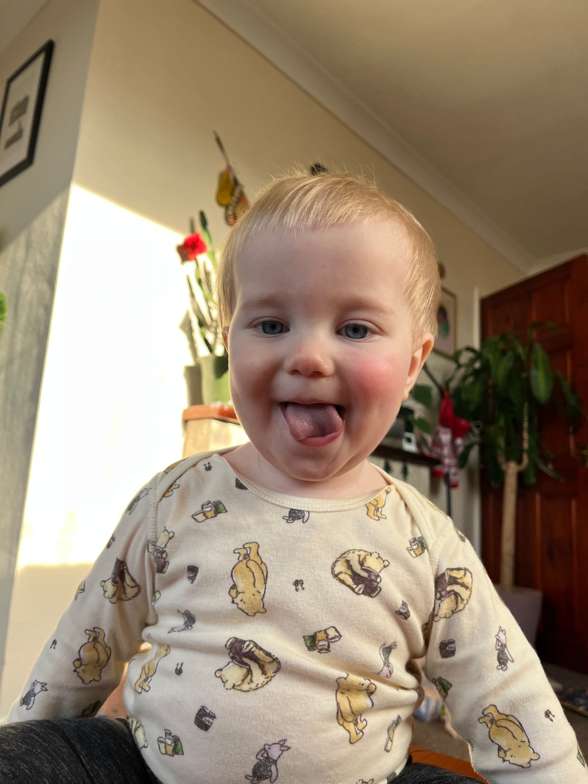 O stříhání vlasů jsme mluvili už delší dobu, ale teď už mu padaly do očí. To byla poslední kapka. Bohužel moje dva oblíbené dětské účesy (holá hlava a mullet) s Rolandovými velmi jemnými vlásky nepřipadaly v úvahu, takže jsme se rozhodli jen pro lehké zastřižení. Když Tee stříhala, řekl jsem: „Hlavně mu to neudělej moc krátké nebo moc rovné.“ Jak krátká a rovná ta ofina je, posuď sám. Mám podezření, že to udělala schválně, protože lidé stejně pořád říkají, jak moc je mi podobný.