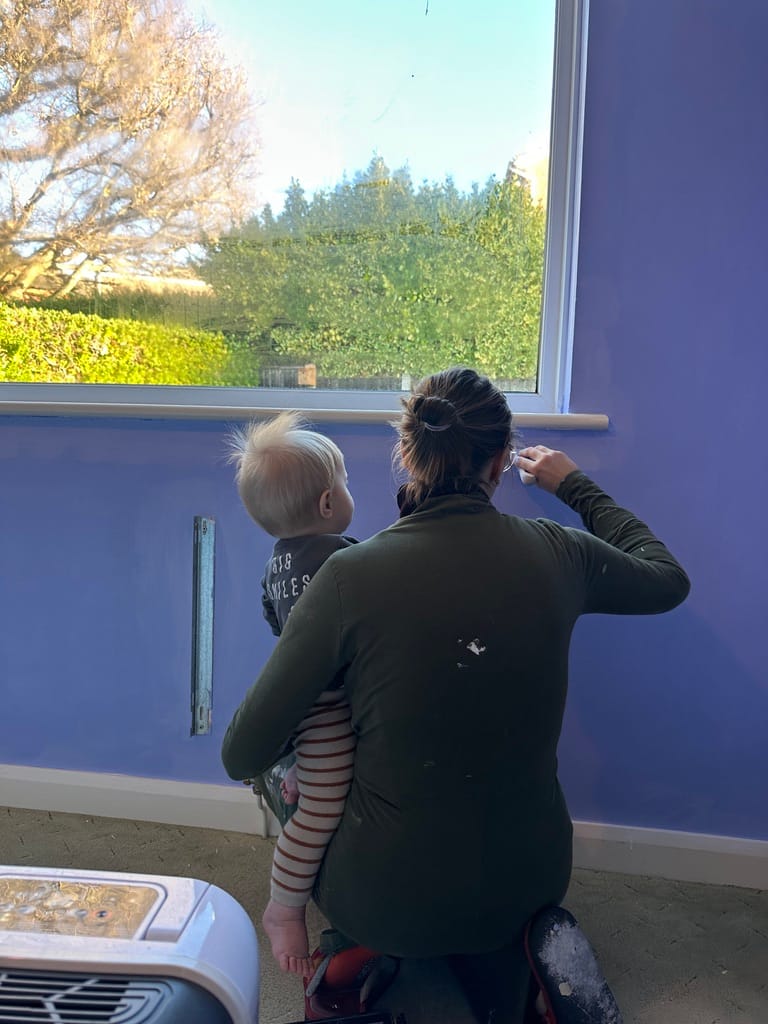 The walls are painted now. Tee is on a mission to get this sorted before his birthday. We have carpet fitters coming through on the 20th which will be just in time. We tried to keep the room a secret from Roland but he camps outside the door if someone is in there. But there's one little secret left 👀