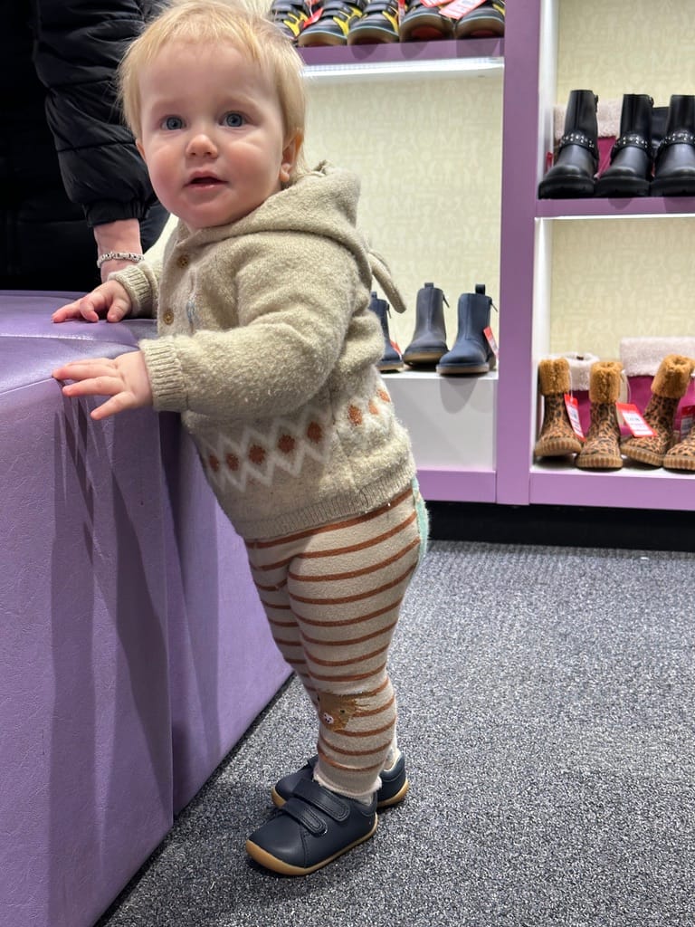 Všichni jeho kamarádi už chodí sebejistě a na hřišti bylo vidět, že ho frustruje, když to ještě úplně nejde. Tak jsme mu nechali změřit nožičky a tento týden jsme mu koupili jeho první boty. Chodil v nich opravdu dobře, i když to trochu připomínalo kočku v ponožkách. Trochu se ale bojím o jeho budoucnost – má široká chodidla a vysoký nárt. Čeká ho celoživotní boj s hledáním lezeček a lyžařských bot.