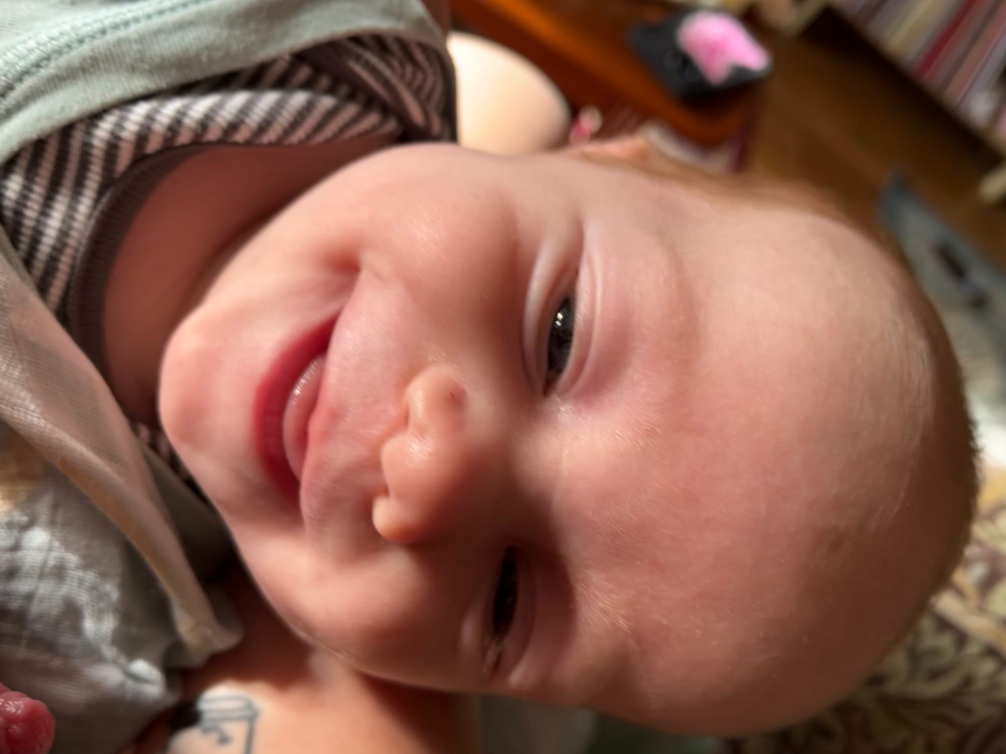 Bros smile game is on point now. He’s very consistent with them now. And we’re getting a lot of them. They're still fleeting and you want to be in the moment with him so it's hard to capture on camera, but here are some we did catch.