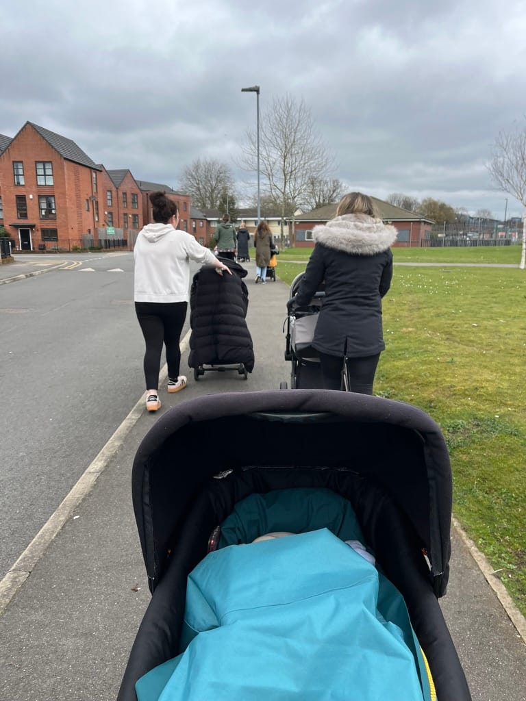 After baby massage the mums go for a walk together. I hear the crew is 9 strong and not to be messed with. As a socialite, Tee is grateful for conversation outside of our house.