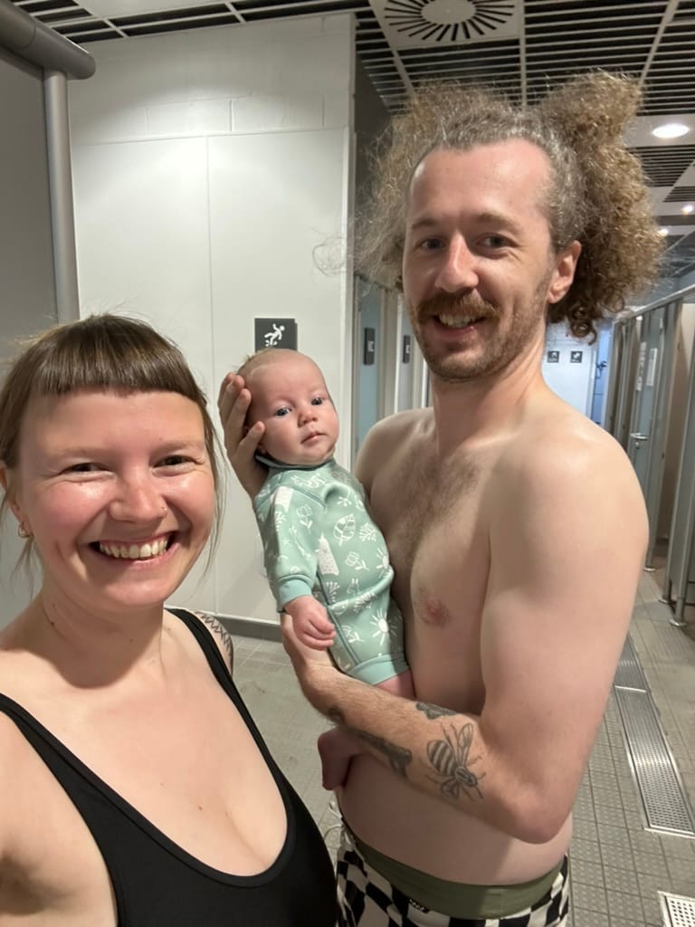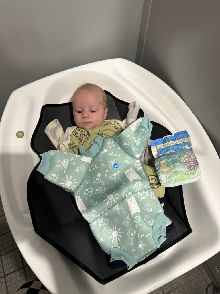 It was mothers day this weekend and mother's wish was to go swimming. So we bought him a little wetsuit and went off to the baths.