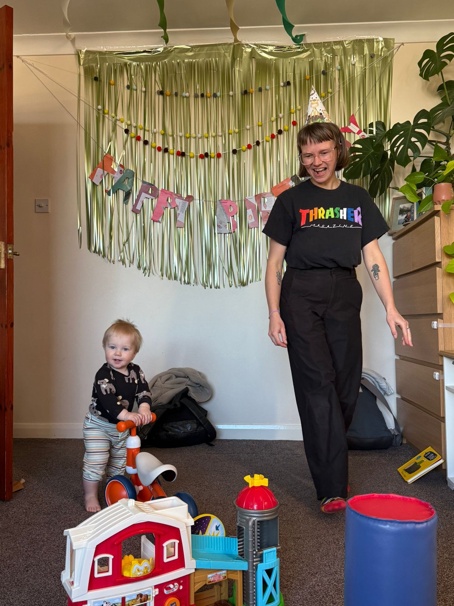 A hlavní událost – dětská narozeninová oslava. Jak krásná a milá akce. Pořád jsme ve fázi, kdy rodičů je víc než dětí, takže napůl to byla spíš oslava pro dospělé. Dokonce bylo i pivo. Děkujeme všem, že jste přišli. A děkuju Tee, že se tak vyřádila s výzdobou. Dokonce připravila i dárkové balíčky – děti dostaly Gorilla Bills a rodiče malé rumy.