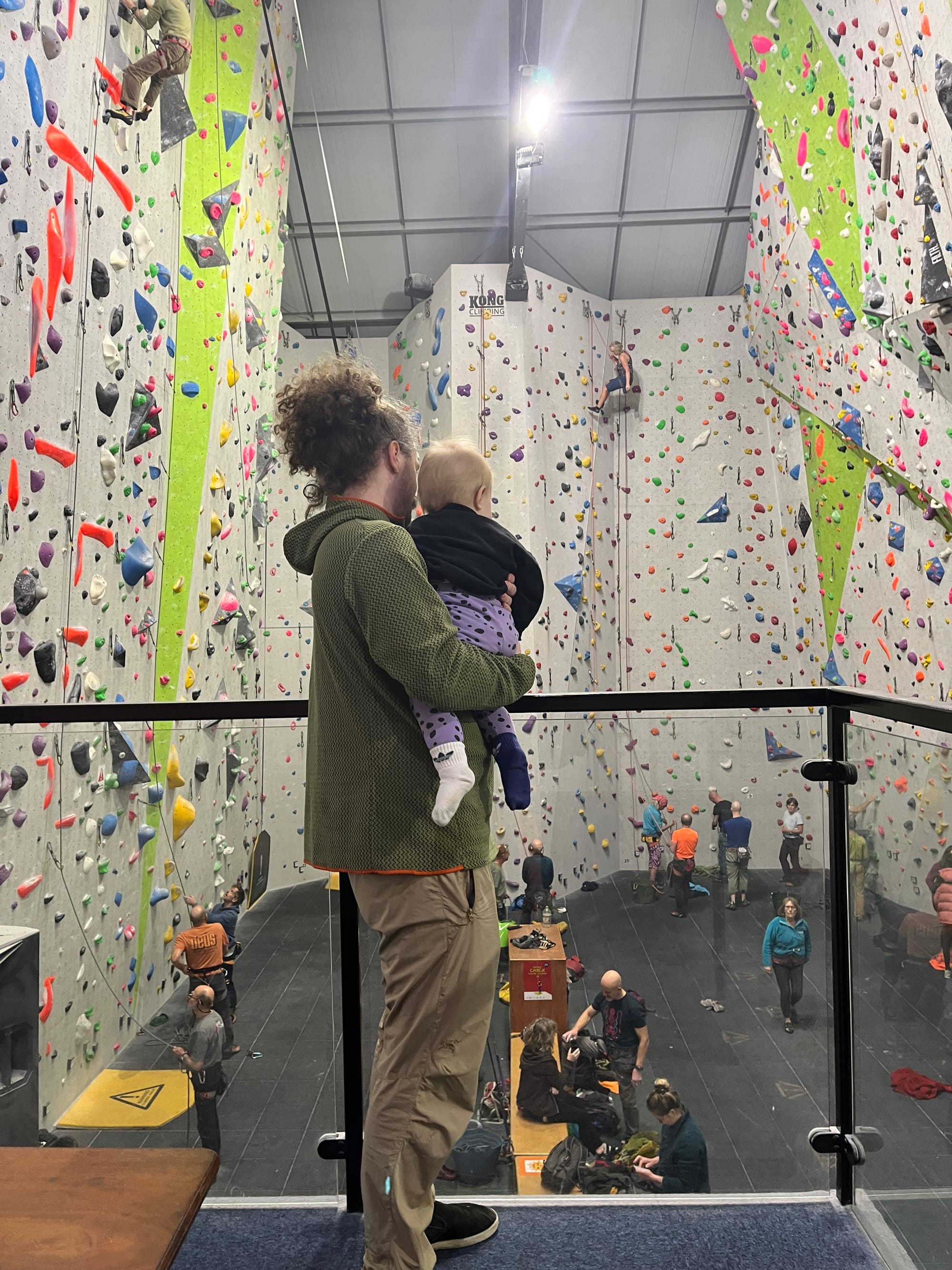 Roland was lucky enough to have three celebrations for his first birthday. On his birthday we took him to the climbing gym. We thought he would have fun anywhere and that we should celebrate ourselves making it through the first year. He loved looking at the climbers on the ropes, and had fun in the kids section. He showed almost no interest in climbing on the holds though. Just went round patting all the big ones.