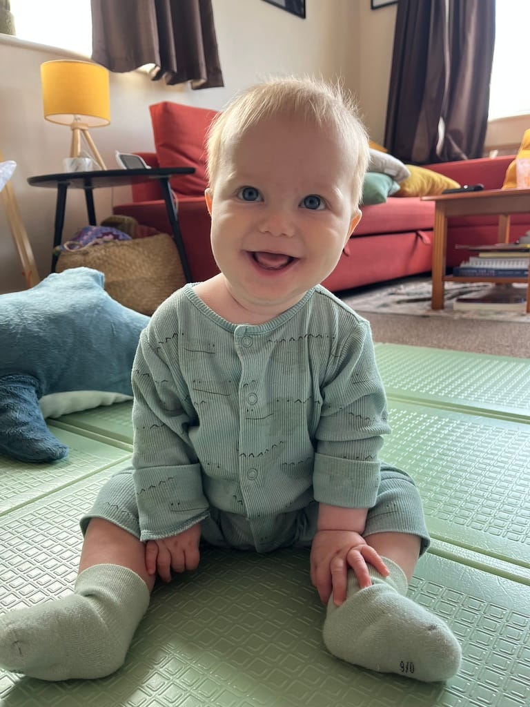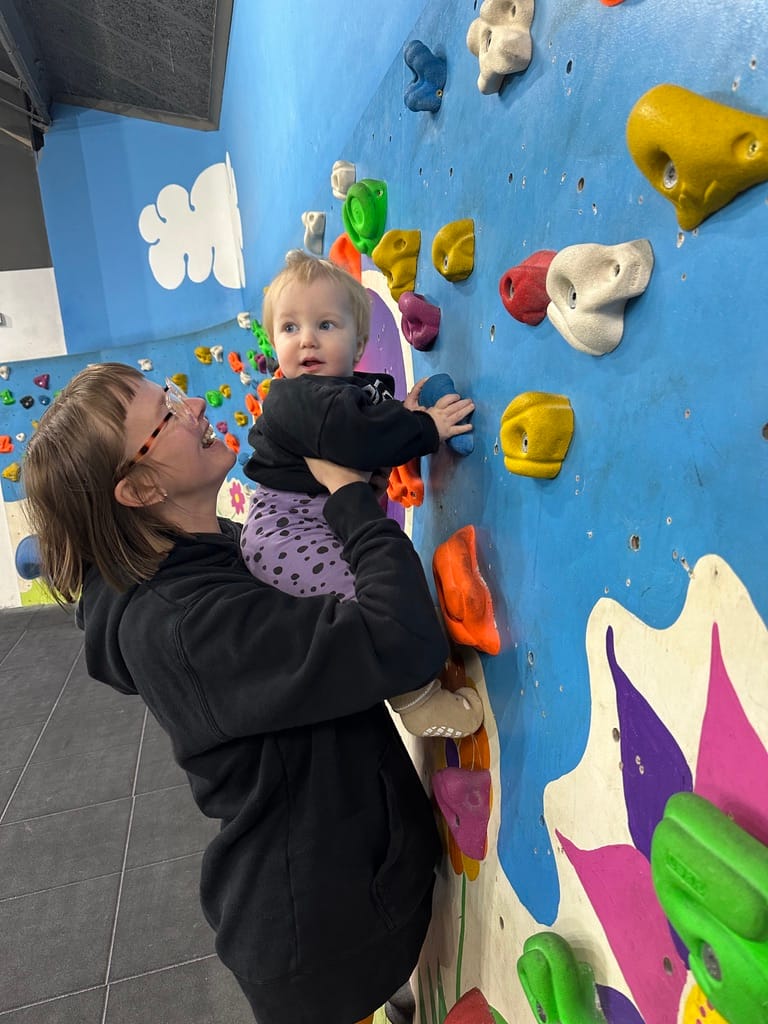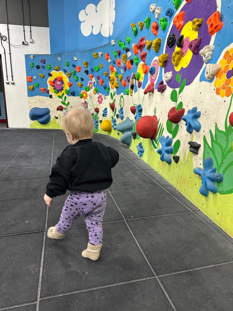 Roland měl štěstí a své první narozeniny oslavil hned třikrát. V den narozenin jsme ho vzali do lezecké haly. Říkali jsme si, že by se mu líbilo kdekoliv a že bychom měli oslavit i to, že jsme zvládli první rok rodičovství. Moc ho bavilo pozorovat lezce na lanech a užil si to i v dětské části. O samotné lezení po chytech ale nejevil skoro žádný zájem – jen chodil kolem a plácal po těch velkých.